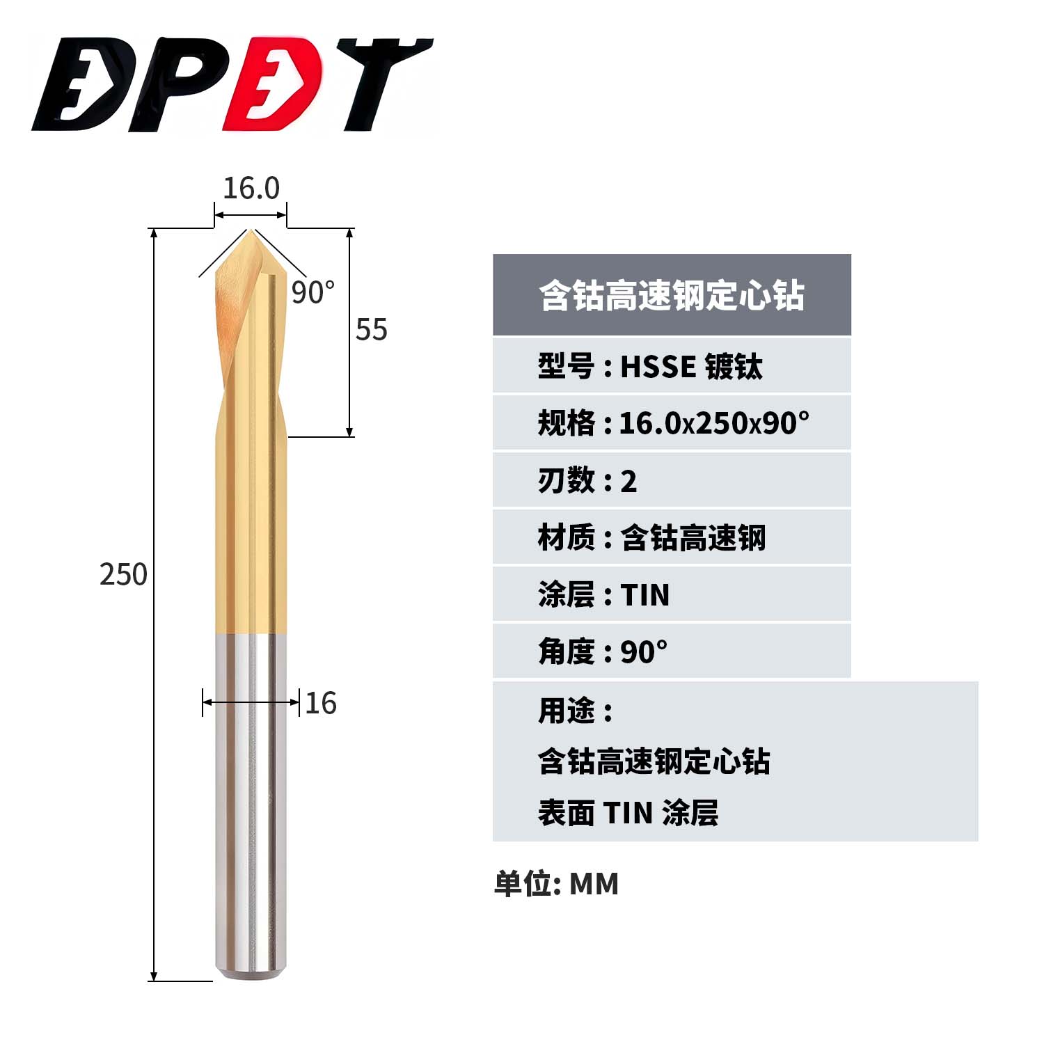 HSSE镀钛16.0x250x90°